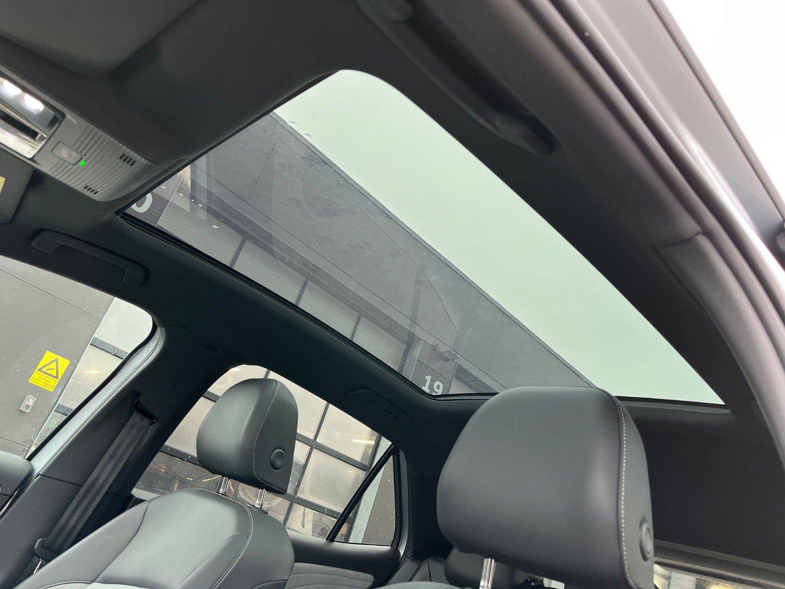 * Panoramaglastag i mørkt glas med elektrisk solgardin